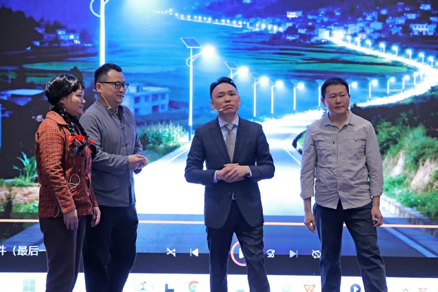 文藝匯演環(huán)節(jié)以“去發(fā)光,而不是被照亮”為核心主旨,精彩紛呈。其中,由融海智城公司董事長(zhǎng)陳前同志攜團(tuán)隊(duì)成員本色演繹的情景短劇《照亮鄉(xiāng)村振興路》作為壓軸節(jié)目,贏得了全場(chǎng)..為熱烈的掌聲與高度贊譽(yù)。該劇正是根據(jù)陳前同志的真實(shí)事跡改編而成,生動(dòng)再現(xiàn)了他作為融海智城公司的掌舵人,積極響應(yīng)國(guó)家鄉(xiāng)村振興戰(zhàn)略,為貴州省畢節(jié)市七星關(guān)區(qū)山村捐贈(zèng)太陽能路燈,照亮村民出行道路,助力當(dāng)?shù)匕l(fā)展的感人故事。劇中,陳前同志與其他演員真摯的情感、生動(dòng)的表演,不僅藝術(shù)地展現(xiàn)了鄉(xiāng)村振興路上的點(diǎn)滴溫情,更深刻彰顯了融海智城公司在陳前董事長(zhǎng)帶領(lǐng)下,心系社會(huì)、服務(wù)人民的責(zé)任與擔(dān)當(dāng),以及“成為光”的企業(yè)價(jià)值觀和正能量。融海智城公司以藝術(shù)形式將企業(yè)的社會(huì)責(zé)任感傳遞給了每一位觀眾,進(jìn)一步提升了公司的社會(huì)形象和美譽(yù)度,成為聯(lián)誼會(huì)上備受稱贊的亮點(diǎn)。